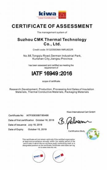 热烈祝贺苏州矽美科导热科技有限公司获得ISO/TS16949车质量管理体系认证!