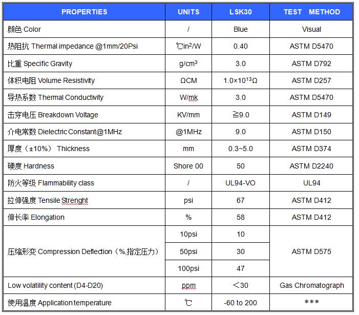 SK系列导热垫片环保、柔软、易压缩;高效能、高绝缘、高阻燃、高压缩量;耐高低温、不氧化、低出油、耐候性好;适用各种要求严苛的应用领域,有良好导热性能且适合用来填充机构缝隙,提升发热元件与金属散热片之间的热传递效率。