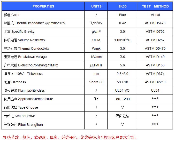 SK系列导热垫片环保、柔软、易压缩;高效能、高绝缘、高阻燃、高压缩量;耐高低温、不氧化、低出油、耐候性好;适用各种要求严苛的应用领域,有良好导热性能且适合用来填充机构缝隙,提升发热元件与金属散热片之间的热传递效率。